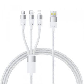 Cabo de carregamento USB-A para Lightning / microUSB / USB-C Baseus StarSpeed 3 em 1, 100 W, 5 A, 1,5 m, branco P10319900211-00