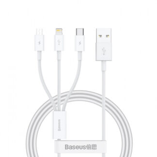 Cabo de carregamento USB-A para Lightning / microUSB / USB-C Baseus Superior Série 3 em 1, 20 W, 3,5 A, 1,2 m, branco CAMLTYS-02
