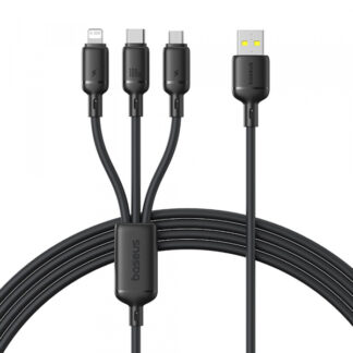 Cabo de carregamento USB-A para Lightning / microUSB / USB-C Baseus Silky 3 em 1, 100 W, 5 A, 1,5 m, preto P10377705123-00