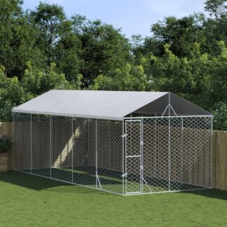 Canil de exterior com teto 6x6x2,5 m aço galvanizado prateado – PORTES GRÁTIS