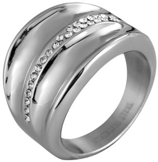 Akzent® Anel Feminino com Zircônias em Aço Inoxidável – Tam.54