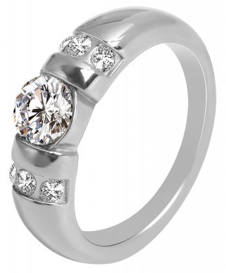 Akzent® Anel Feminino com Zircônias em Aço Inoxidável – Tam. 60