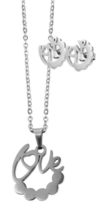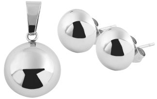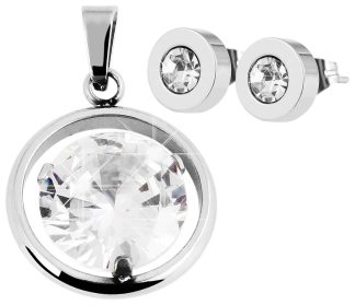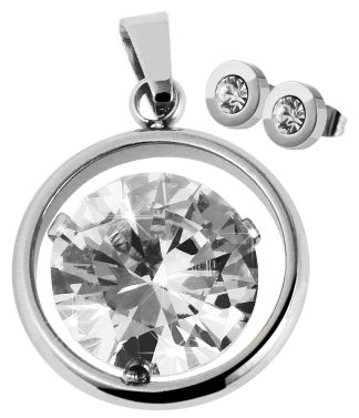 • Akzent® Conjunto Pingente e Brincos Prateados em Aço Inoxidável – 0008