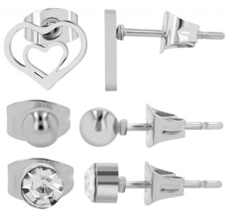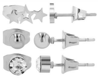 • Akzent® Conjunto de 3 Pares de Brincos Prateados 0834