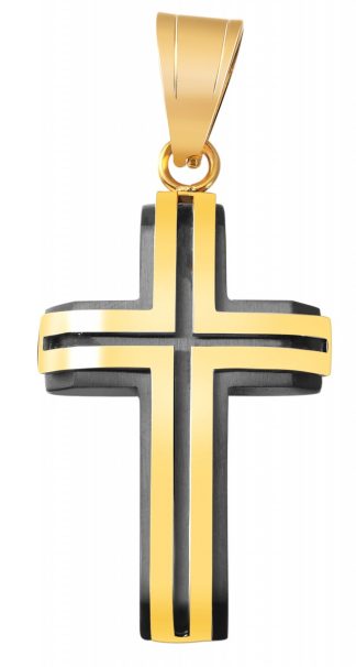 • Akzent® Pingente Cruz Dourado/Preto em Aço Inoxidável Banhado a Íon