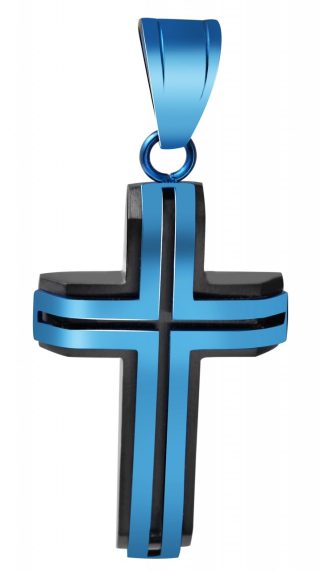 • Akzent® Pingente Cruz Azul/Preto em Aço Inoxidável Banhado a Íons