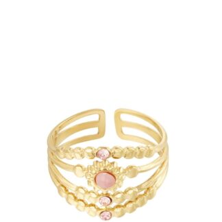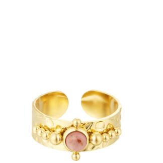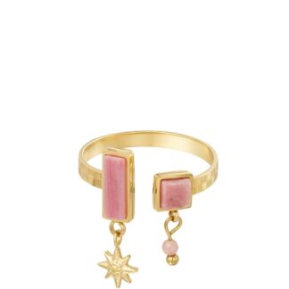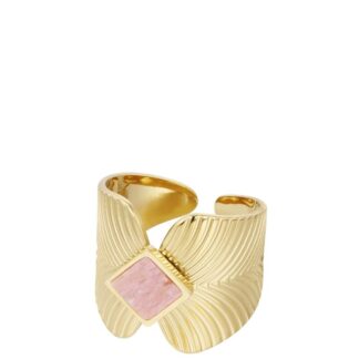 MonBijoux by Ophélia® Anel com Pedra Natural Dourado e Rosa RST7136