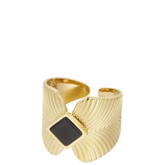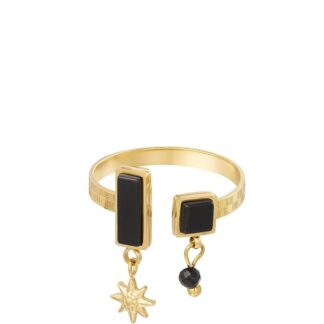 MonBijoux by Ophélia® Anel Aberto com Pedras Dourado e Preto RST6826