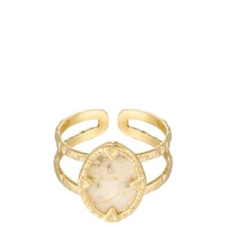 MonBijoux by Ophélia® Anel com Pedra Natural Dourado e Bege RST7143
