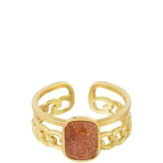 MonBijoux by Ophélia® Anel Twister com Pedra Natural Dourado e Castanho RST6888