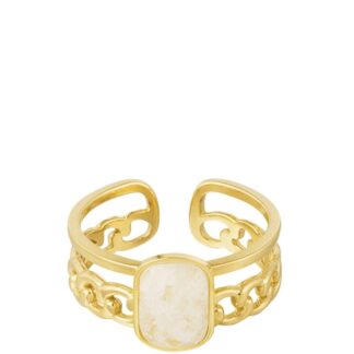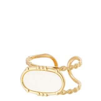 MonBijoux by Ophélia® Anel com Pedra Natural Dourada e Branco Light RST8004