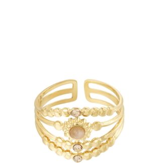 MonBijoux by Ophélia® Anel 4 Camadas com Pedras Naturais Dourado/Bege RST7724