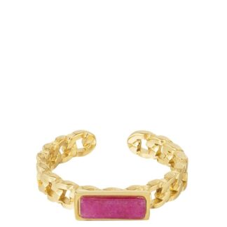 MonBijoux by Ophélia® Anel Liga Pedra Fina Dourado Fúcsia RST7540