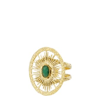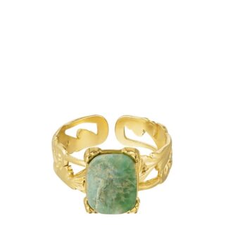 MonBijoux by Ophélia® Anel com Pedra Natural Dourada e Verde RST7670