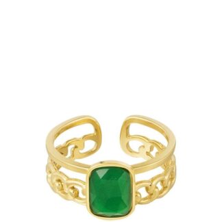 MonBijoux by Ophélia® Anel Elegante com Pedra Dourado/Verde RST7977