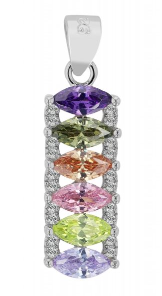 Pingente “Ilana” Prateada em Prata de Lei 925 com Zircônias Coloridas Sem Corrente Banhado a Ródio