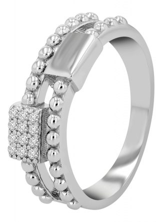 Anel Mulher Prateado em Prata de Lei 925 com Zircônias Banhado a Ródio – Tam.54 – 0081