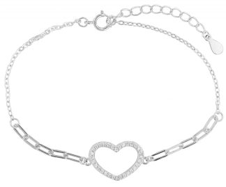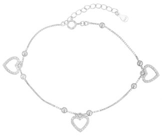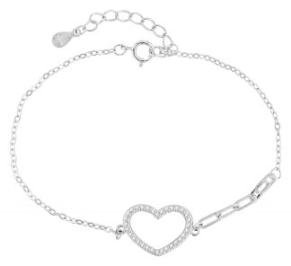 Pulseira “Dila” Coração em Prata de Lei 925 com Zircônias Banhado a Ródio