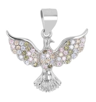Pingente Pombo em Prata de Lei 925 sem Corrente com Zircônias Banhado a Ródio