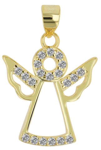 Pingente Anjo em Prata de Lei 925 Eira sem Corrente com Zircónias e Banhado a Ródio