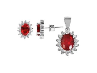 Pingente “Divna” Prateado e Vermelho em Prata de Lei 925 Banhada a Ródio com Zircónias 0127