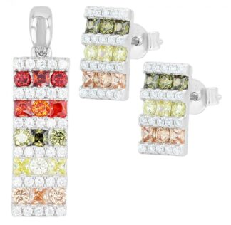 Conjunto Pingente + Brincos “Athene” Prateados em Prata de Lei 925 Banhada a Ródio 0069