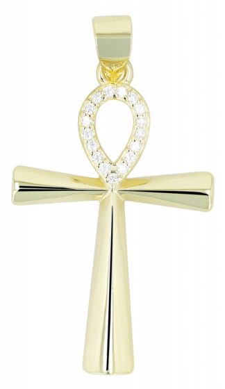 Pingente Cruz “Ankh” Dourada em Prata de Lei 925 Banhado a Ródio 0413