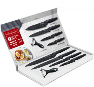 Royalty Line®Conjunto de 7 Facas com Revestimento Antiaderente e Descascador – Preto RL-BLK7-W