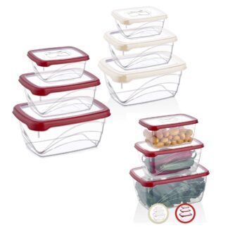 Herzberg® Conjunto 3 Recipientes de Alimentos Vermelho – 4800ml + 2800ml + 1600ml