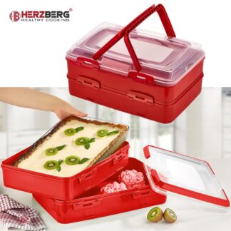 Herzberg® Caixa de Alimentos Dupla Vermelha BPA Free Vermelha 42 cm x 29 cm x 18 cm