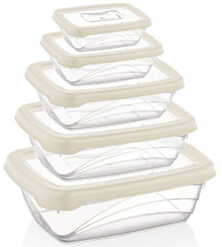 Herzberg® Conjunto de 5 Recipientes de Alimentos Marfin – 4600ml + 2800ml + 1600ml + 800ml + 400ml