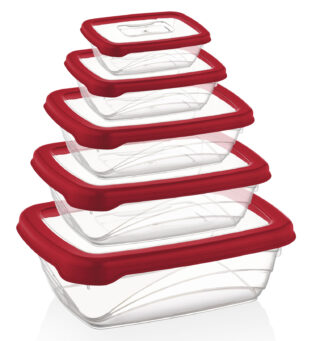 Herzberg® Conjunto de 5 Recipientes de Alimentos Vermelho – 4600ml + 2800ml + 1600ml + 800ml + 400ml