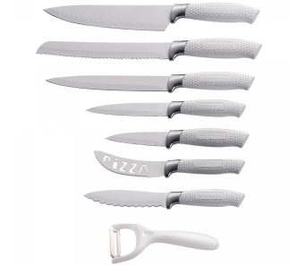 Royalty Line® Conjunto de 7 Facas com Revestimento Antiaderente e Descascador – Branco RL-WHT7-W