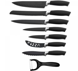Royalty Line®Conjunto de 7 Facas com Revestimento Antiaderente e Descascador – Preto RL-BLK7-W