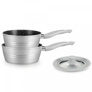 Royalty Line® Conjunto Panelas Cinzentas Revestidas em Mármore 3Pcs