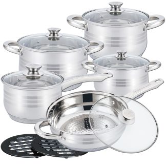 Herzberg® Conjunto de Panelas em Aço Inoxidável 12Pcs