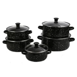 Herzberg® Panela e Caçarola de Cozinha Esmaltada com Tampa de Vidro (10 Peças)