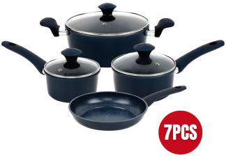 Herzberg® Trem de Panelas Forjadas Revestidas a Mármore com 7 Peças Azul