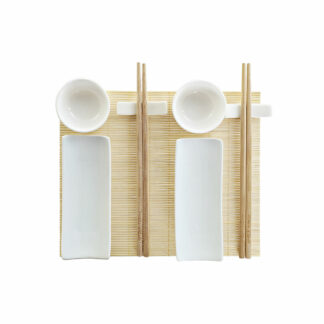 Conjunto de sushi DKD Home Decor Bambu Plástico Grés Branco Natural Oriental 28,8 x 19,8 x 3 cm (7 Peças) (28,8 x 19,8 x 3 cm)