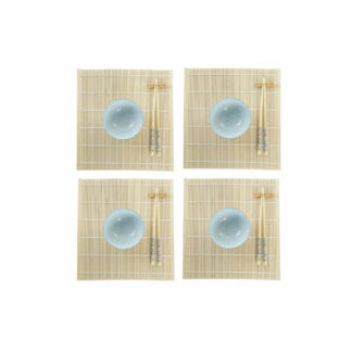 Conjunto de sushi DKD Home Decor Bambu Grés Branco Natural Oriental 27,3 x 20,3 x 2,5 cm (12 Unidades)