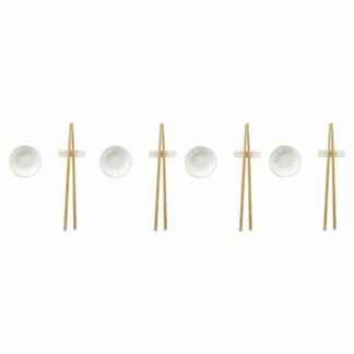 Conjunto de sushi DKD Home Decor 8 x 5 x 2 cm Cerâmica Natural Branco Oriental