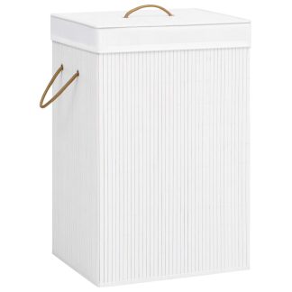 Cesto para roupa suja 72 L bambu branco – PORTES GRÁTIS