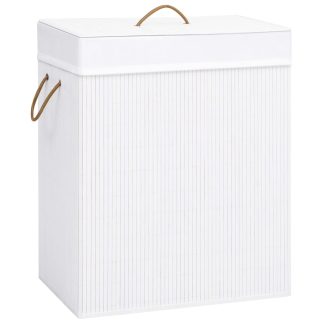 Cesto para roupa suja 83 L bambu branco – PORTES GRÁTIS
