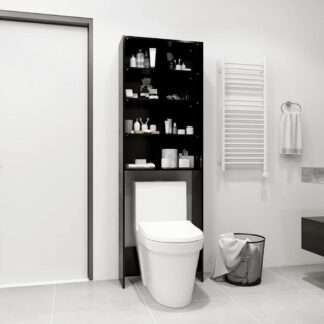 Armário para máquina de lavar roupa 64x24x190 cm preto – PORTES GRÁTIS
