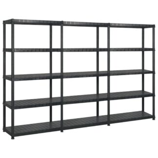 Unidade com 5 prateleiras 255x40x185 cm plástico preto – PORTES GRÁTIS