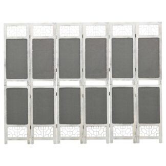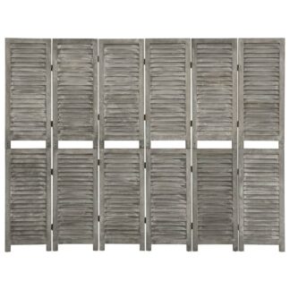 Biombo com 6 painéis 214×166 cm madeira maciça cinzento – PORTES GRÁTIS