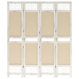 Biombo com 4 painéis 160×200 cm tecido branco – PORTES GRÁTIS