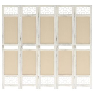 Biombo com 5 painéis 250×200 cm tecido branco – PORTES GRÁTIS