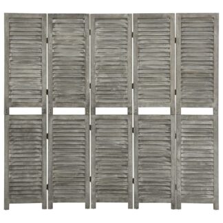 Biombo com 5 painéis 179×166 cm madeira maciça cinzento – PORTES GRÁTIS