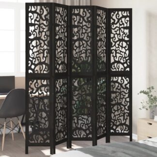 Biombo com 5 painéis madeira de paulownia maciça preto – PORTES GRÁTIS